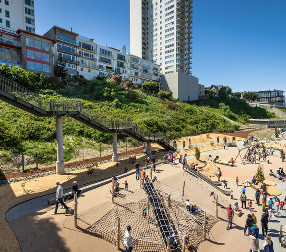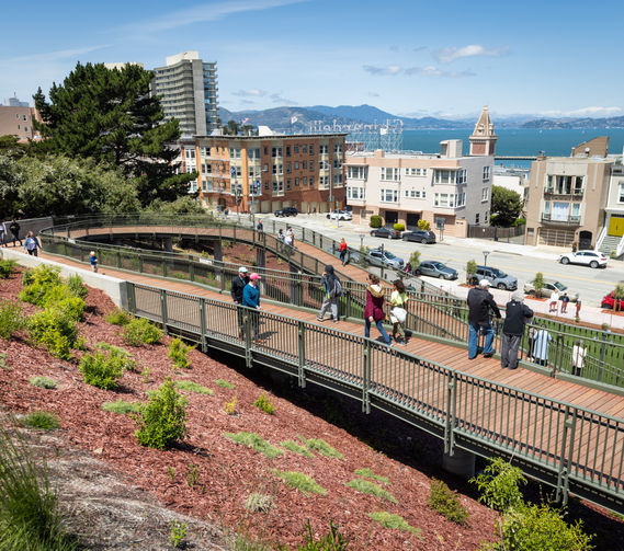 In 1859, the Francisco Reservoir was constructed. Located on Russian Hill, it was the first large reservoir to be built in San Francisco to accommodate the rapid growth and development of the city, as a result of the gold rush. In 1940, the Reservoir was obsoleted with the opening of Lombard Reservoir, which is now covered by tennis courts and Sterling Park. From 1947 to 1958, groups were at odds with plans for the property. Recreation and Park Development sent a letter to the Mayor explaining why the entire property is necessary to “provide adequate recreation and park services for this densely populated district,” while developers were presenting plans for two story apartment towers and 3 levels of garage. All efforts to turn this land into a commercial development were met with overwhelming resistance from the community. In 2008, the Public Utilities Commission (PUC) appeared before the Board of Supervisors to confirm plans to develop the Reservoir, however the Board of Supervisors passed Resolution 502.08, reaffirming the reservoirs status as open space. In 2014, San Francisco Recreation and Park Development acquired the 4.25 acres from the San Francisco Public Utilities Commission. Breaking ground in summer 2019, the City gave the community a unique opportunity to transform this site into a stunning park with expansive, commanding Bay views.